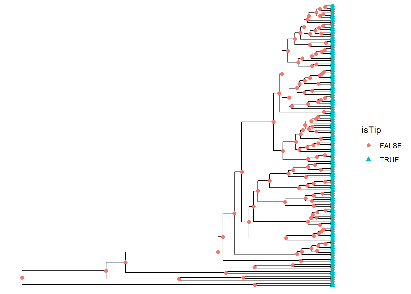 geom_nodepoint(color = "red", size = 2, shape = 17, alpha=.8)Forma dos nós e terminais